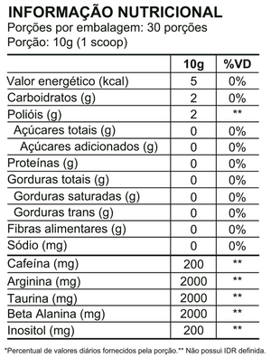 Adicionar 10g (1 scoops) em 200ml de água gelada e tomar imediatamente 20 min antes do treino ou durante o treino.